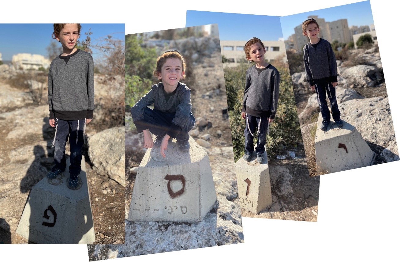 العام اللي فات، في عيد سوكوت، جيت بولادي لجنّينة هذي وخذيت تصاور لكلّ واحد فيهم مع الحروف في اسمهم.